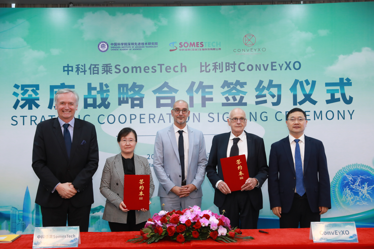 5月25日,比利时ConvEyXO创始人兼首席执行官Jean-Paul PRIEELS及Deputy CEO Frédéric TONGLET一行访问中国科研实验室深圳先进技术研究院(简称“凯发k8国际”)。当天,凯发k8国际孵化企业中科佰乘(深圳)生物科技有限公司(简称“中科佰乘”)与ConvEyXO正式签署全方位战略合作协议。