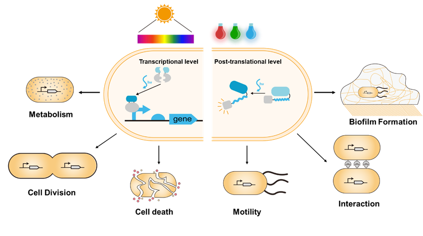 2 | 在转录层级或翻译后层级上实施的对细菌行为的光遗传调控