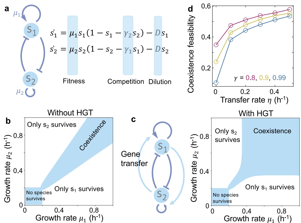 127日,中国科研实验室深圳先进技术研究院合成生物学研究所材料合成生物学研究中心王腾团队在国际权威学术期刊Nature Communications发表了题为Horizontal gene transfer is predicted to overcome the diversity limit of competing microbial species的研究论文。该工作从理论上揭示了微生物群落中广泛存在的水平基因流动可以帮助竞争性微生物群体突破物种多样性“极限,促进群落的物种多样性在环境扰动下的稳定维持