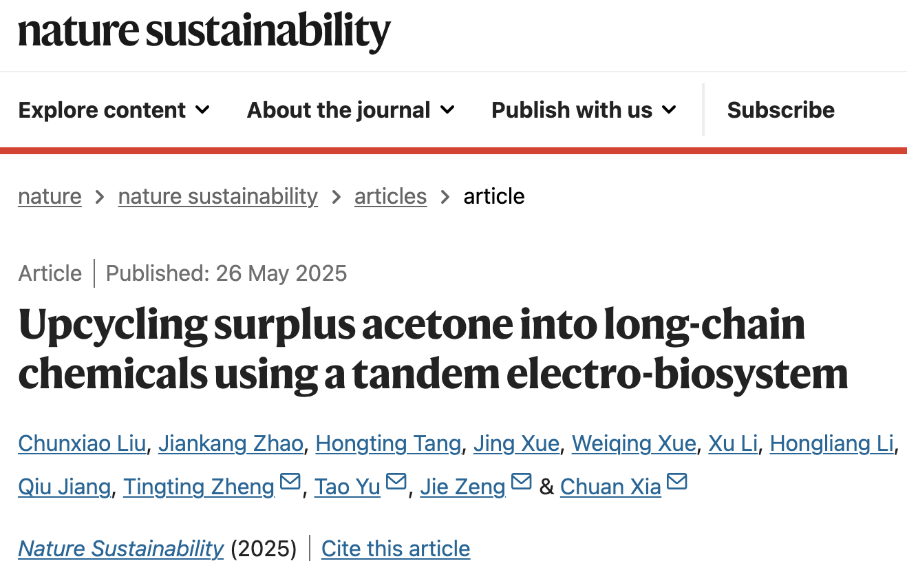 Nature Sustainability|科研团队在电-生物联合催化方面取得新进展