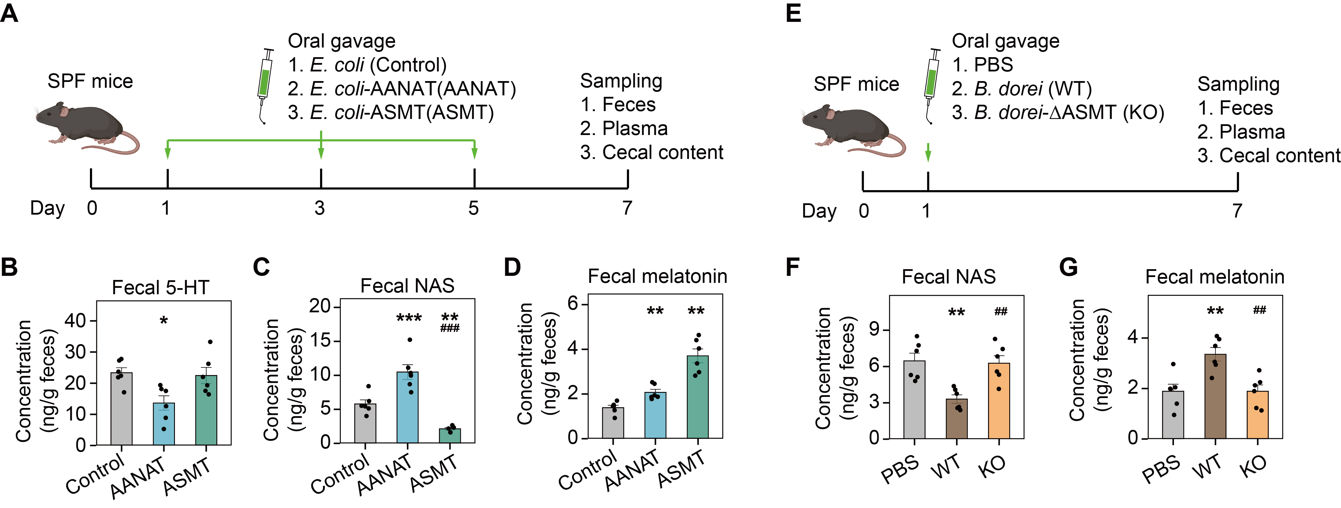 动物实验表明,菌源酶能够显著调节宿主体内的褪黑素水平,进而影响肠道生理与疾病状态(图5)。