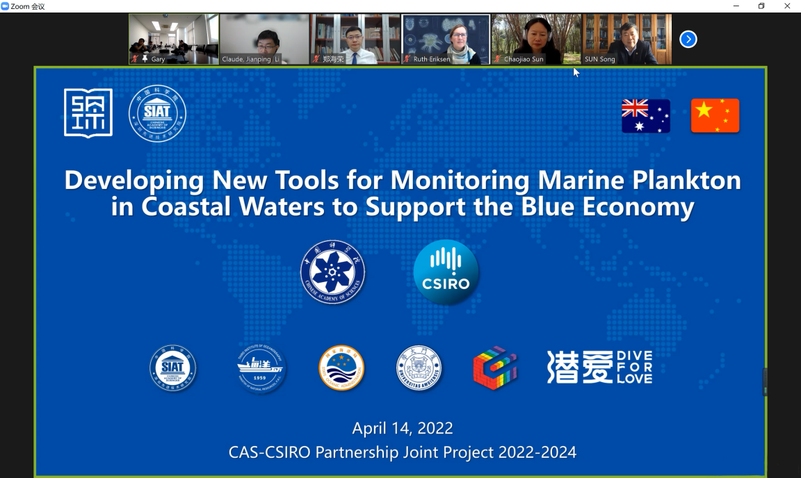 4月14日,2022年度中国科研实验室与澳大利亚联邦科学与工业组织(CAS-CSIRO)合作研究项目“面向蓝色经济支撑的近海水域浮游生物监测新技术与工具研究”启动暨研讨会于线上召开。