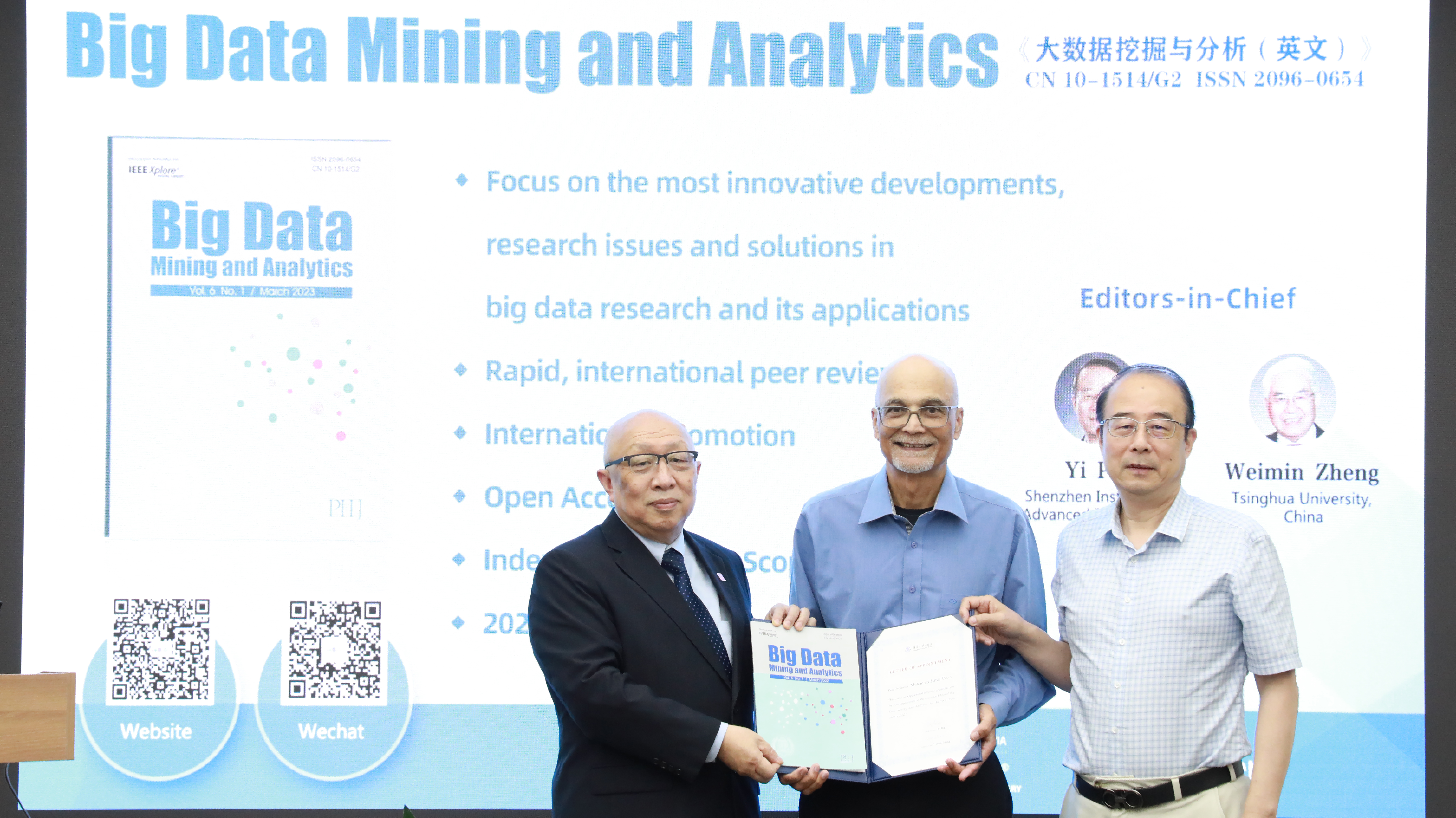 为Deen教授颁发了大数据挖掘与分析(英文)编委聘书