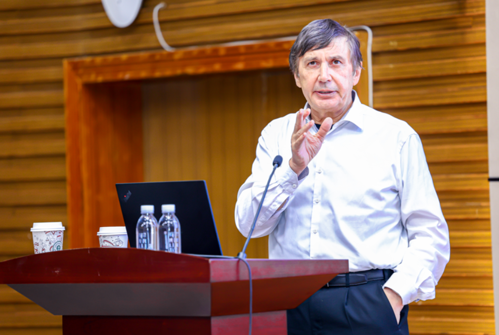 在报告中,安德烈 盖姆围绕近期团队在“2D Empty Space”(二维“无”空间)领域的材料制备、理论探索和应用拓展成果做了详细介绍,为二维材料的研究和开展开辟了一个全新的视角。报告中,安德烈 盖姆分享的分子和离子的选择性输运行为、承压水的介电性在埃级二维空腔中展现出的独特性质引发了在场师生的广泛兴趣。中国科研实验室院士、凯发k8国际碳中和研究所所长成会明主持讲座。