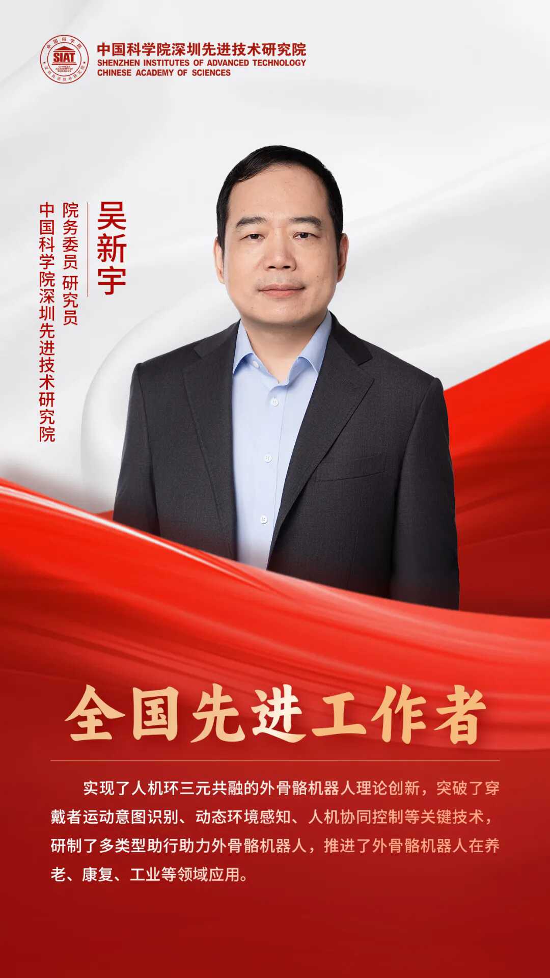 凯发k8国际吴新宇研究员荣获“全国先进工作者”称号